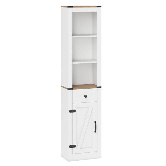 ● Upper shelves pull-out drawer and enclosed cabinet keep your space organized
