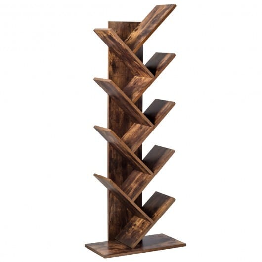 8-Tier Free Standing Tree Bookshelf-Coffee