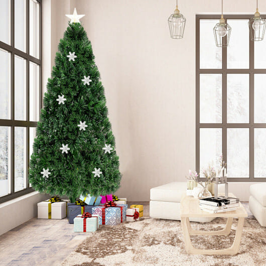 Costway LED Optic Artificial Christmas Tree with Snowflakes 6 Feet