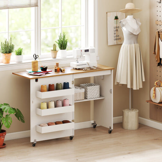 ● Multifunctional folding design serves as a sewing table side table and computer desk