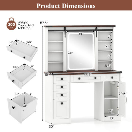 ● 1 tabletop 1 cabinet 6 drawers and 9 shelves to keep your room neat