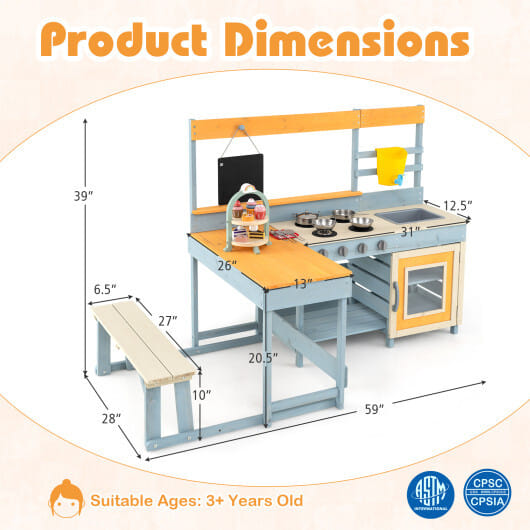 ● Mud kitchen and picnic table and bench set for a 2-in-1 design