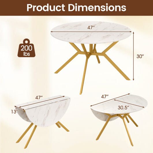 Folding Dining Table 47 Inch Extendable Round Kitchen Table with Drop Leaves-White