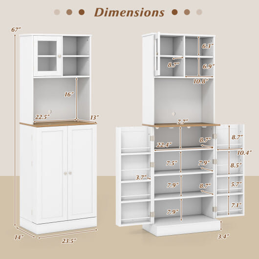 Be the first to review “Kitchen Pantry Cabinet 67 Inch Freestanding Tall Cupboard with Microwave Shelf-White”