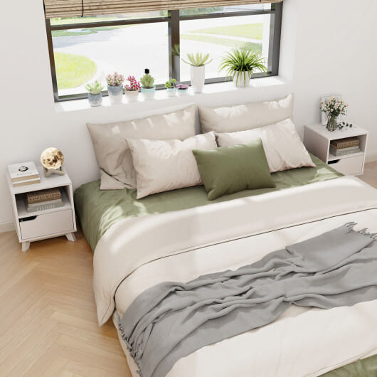 ● Equipped with a storage drawer and shelf for bedtime essentials