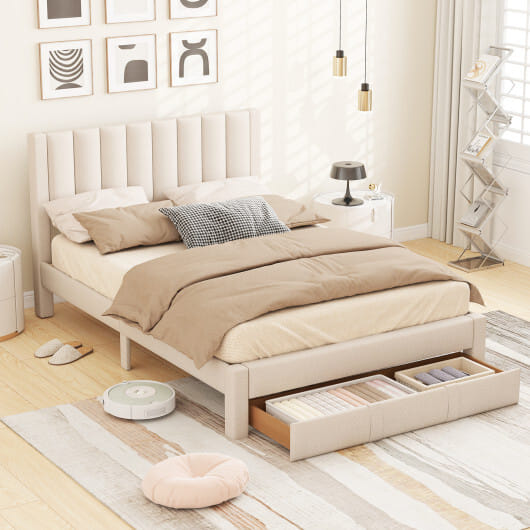 ● Upholstered bed with vertical channel headboard elevates your bedroom