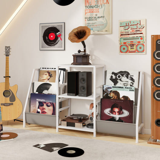 ● Serves as a display shelf a storage stand or a record player stand as needed