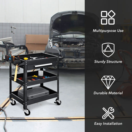 ● Three trays a drawer an organizer shelf and spacious space for storage