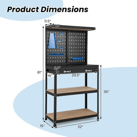 ● Equipped with 2 pegboards and 14 hanging accessories