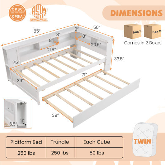 ● Twin platform bed and rolling trundle offer expanded sleeping surface
